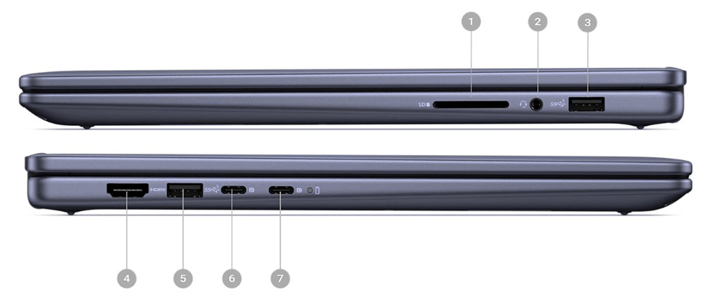 • Cạnh phải bao gồm: 1x SD Card Reader, 1x USB Type-A, 1x Headphone & Microphone Audio Jack.