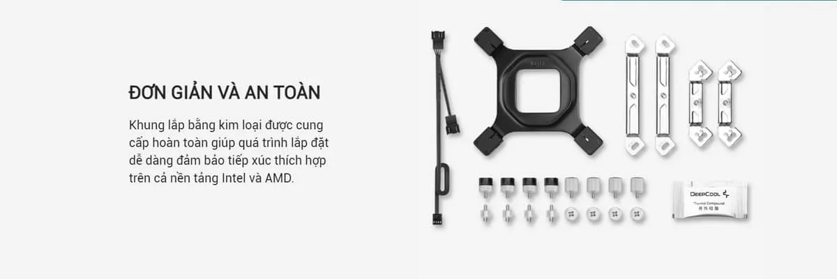 Sự bền bỉ của sản phẩm được khẳng định qua việc sử dụng vòng bi thủy lực cho quạt, giúp giảm thiểu ma sát, từ đó tăng tuổi thọ vận hành và giảm tiếng ồn cơ khí. Bên cạnh đó, Deepcool cũng rất chú trọng đến trải nghiệm người dùng khi cung cấp bộ ngàm lắp đặt tối giản nhưng cực kỳ chắc chắn, hỗ trợ tốt cho cả nền tảng Intel và AMD (bao gồm cả các socket mới nhất). Dù bạn là một chuyên gia lắp máy hay chỉ là người mới bắt đầu tập tành “build” PC, bạn cũng có thể hoàn thành việc lắp đặt bộ tản này một cách tự tin và an toàn chỉ với vài thao tác cơ bản.