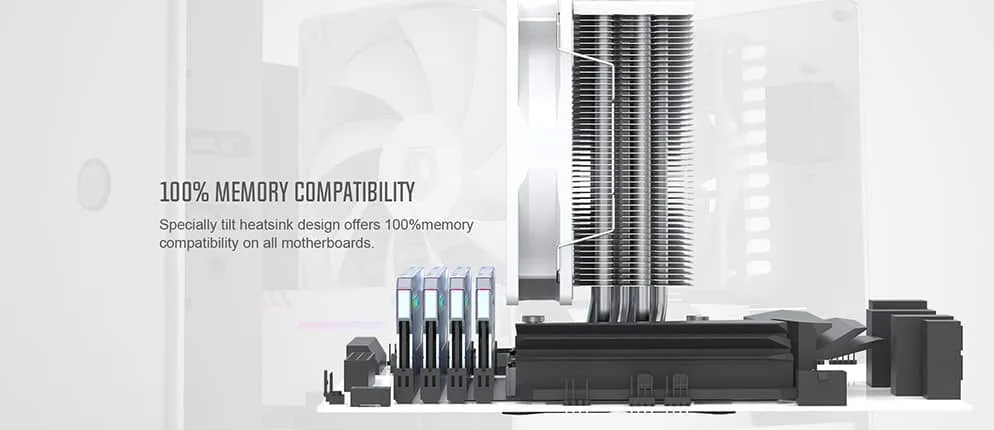 Kích thước tổng thể của tản được tinh chỉnh để không che khuất các khe cắm RAM, cho phép bạn thoải mái sử dụng các loại RAM có tản nhiệt cao mà không gặp trở ngại. Với chiều cao 150mm, sản phẩm dễ dàng “lọt thỏm” trong hầu hết các dòng vỏ Case Mid-Tower phổ biến hiện nay. Thêm vào đó, hệ thống ngàm kim loại đi kèm cực kỳ chắc chắn và dễ lắp đặt, ngay cả với những người mới bắt đầu tự build PC lần đầu cũng có thể thực hiện một cách nhanh chóng.
