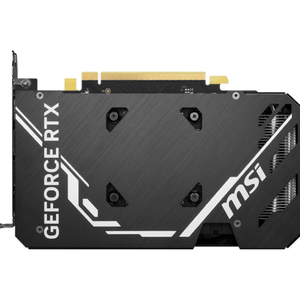 Mặt sau MSI GeForce RTX 4060 Ti VENTUS 2X BLACK 16G OC sẽ là tấm backplate từ nhôm tăng cường khả năng bảo vệ tối đa cho tổng thể của chiếc card màn hình. Hoàn thiện với những chi tiết cùng đường nét tinh tế, tấm backplate góp phần tô điểm cho vẻ đẹp toàn diện của chiếc VGA từ MSI bên trong case máy tính. Ngoài ra, trên tấm backplate là những khoảng không tăng cường cho khả năng lưu thông gió vào trong chiếc card đồ họa.